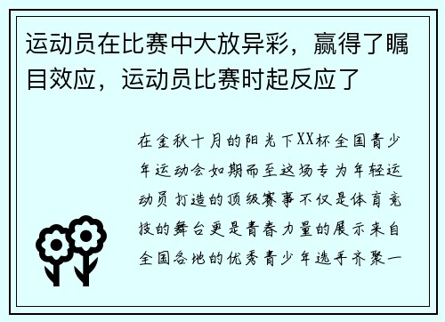 运动员在比赛中大放异彩,赢得了瞩目效应,运动员比赛时起反应了
