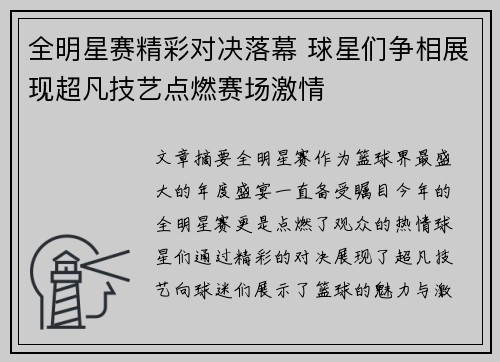 全明星赛精彩对决落幕 球星们争相展现超凡技艺点燃赛场激情