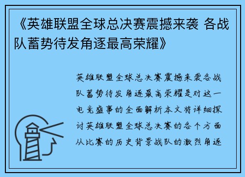 《英雄联盟全球总决赛震撼来袭 各战队蓄势待发角逐最高荣耀》