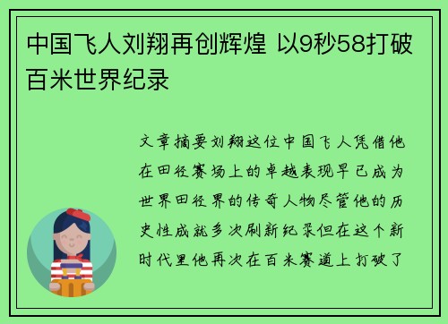 中国飞人刘翔再创辉煌 以9秒58打破百米世界纪录