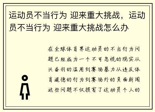 运动员不当行为 迎来重大挑战,运动员不当行为 迎来重大挑战怎么办