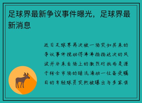 近日,足球界再次被一场突如其来的争议事件搅动得沸沸扬扬。这次的风波并非来自场上的激烈对抗,而是源于转会市场的暗流涌动。一位备受瞩目的年轻球员突然被曝出与多家俱乐部存在合同纠纷,而这些俱乐部之间的博弈更是让整个事件变得扑朔迷离。这不仅仅是一场...