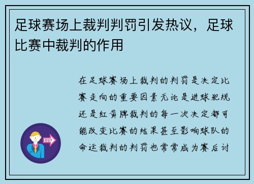 足球赛场上裁判判罚引发热议,足球比赛中裁判的作用