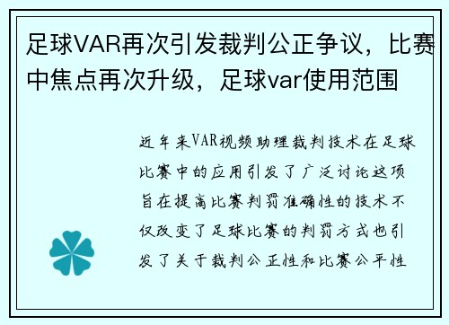 足球VAR再次引发裁判公正争议,比赛中焦点再次升级,足球var使用范围
