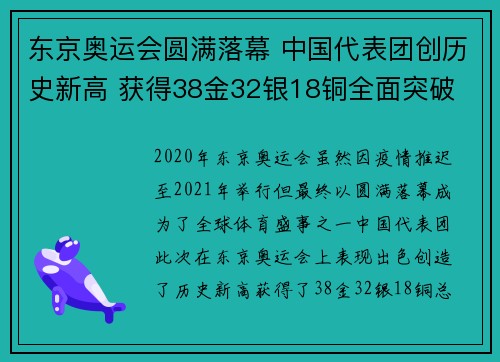 东京奥运会圆满落幕 中国代表团创历史新高 获得38金32银18铜全面突破
