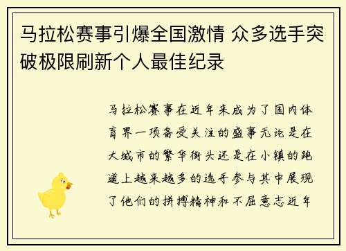 马拉松赛事引爆全国激情 众多选手突破极限刷新个人最佳纪录