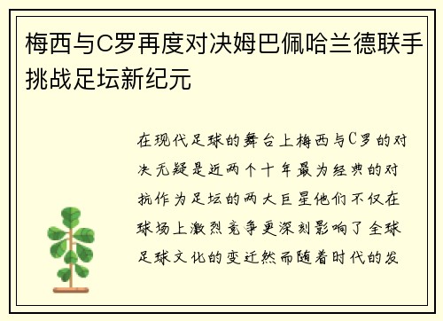 梅西与C罗再度对决姆巴佩哈兰德联手挑战足坛新纪元