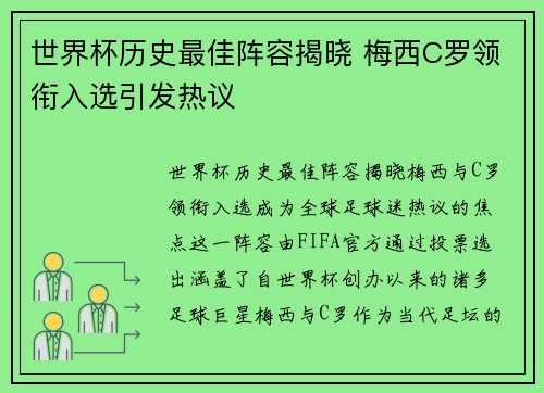 世界杯历史最佳阵容揭晓 梅西C罗领衔入选引发热议