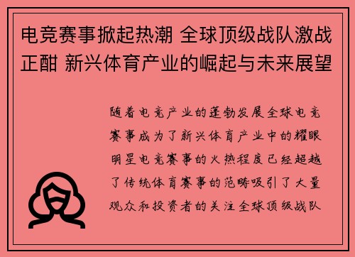 电竞赛事掀起热潮 全球顶级战队激战正酣 新兴体育产业的崛起与未来展望