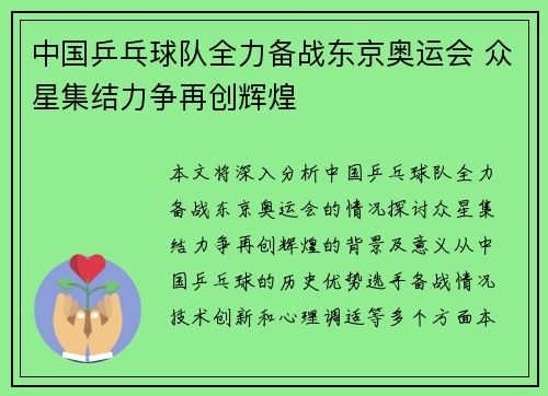 中国乒乓球队全力备战东京奥运会 众星集结力争再创辉煌