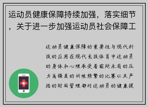 运动员健康保障持续加强,落实细节,关于进一步加强运动员社会保障工作的通知