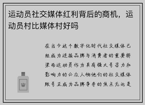 运动员社交媒体红利背后的商机,运动员村比媒体村好吗