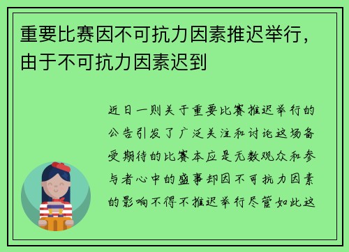 重要比赛因不可抗力因素推迟举行,由于不可抗力因素迟到