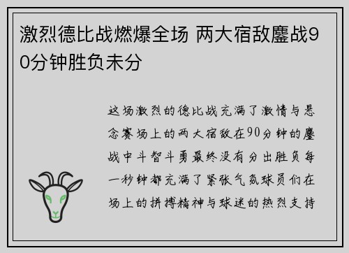 激烈德比战燃爆全场 两大宿敌鏖战90分钟胜负未分