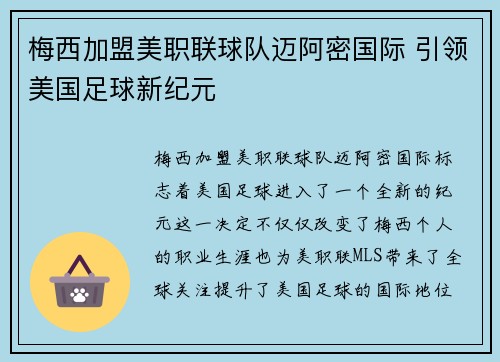 梅西加盟美职联球队迈阿密国际 引领美国足球新纪元