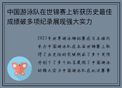 中国游泳队在世锦赛上斩获历史最佳成绩破多项纪录展现强大实力