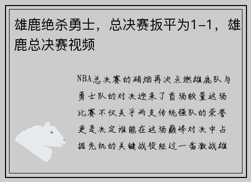 雄鹿绝杀勇士,总决赛扳平为1-1,雄鹿总决赛视频