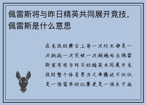 在竞技的舞台上,每一次对决都是一次挑战,一次突破,一次超越。而当佩雷斯宣布将与昨日的精英共同展开竞技时,整个体育界为之沸腾。这不仅仅是一场简单的比赛,更是一场关于成长与超越的盛宴。佩雷斯,这位年轻而充满活力的选手,用自己的实力和决心,向世人...