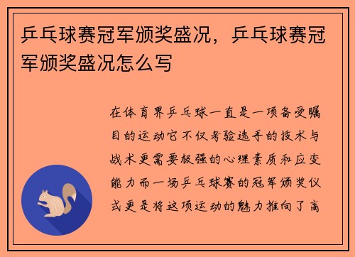 乒乓球赛冠军颁奖盛况,乒乓球赛冠军颁奖盛况怎么写