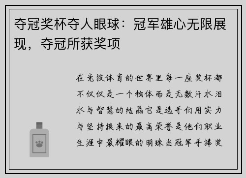 夺冠奖杯夺人眼球:冠军雄心无限展现,夺冠所获奖项