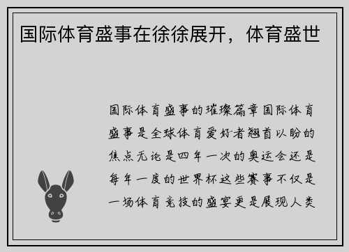 全球体育界正迎来一场前所未有的盛事——各大顶级赛事即将开幕,来自世界各地的顶尖运动员们秣马厉兵,全力以赴备战这场巅峰对决。无论是田径场上的短跑健将,还是泳坛的自由泳王者;无论是篮坛的超级巨星,还是足坛的顶级前锋,他们都以最佳状态迎接这场终极...