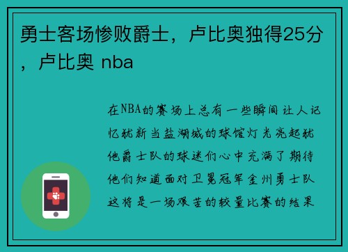 勇士客场惨败爵士,卢比奥独得25分,卢比奥 nba