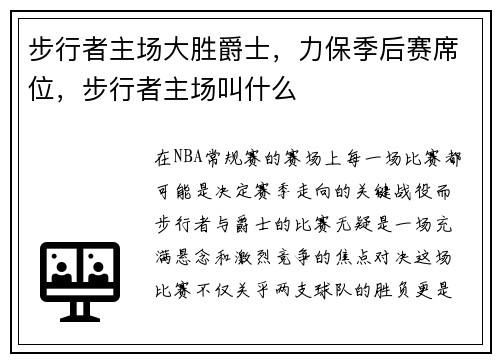 步行者主场大胜爵士,力保季后赛席位,步行者主场叫什么