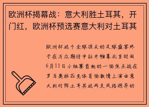 欧洲杯揭幕战:意大利胜土耳其,开门红,欧洲杯预选赛意大利对土耳其