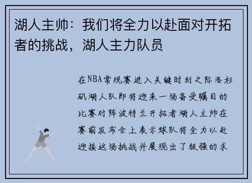 湖人主帅:我们将全力以赴面对开拓者的挑战,湖人主力队员