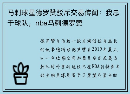 马刺球星德罗赞驳斥交易传闻:我忠于球队,nba马刺德罗赞