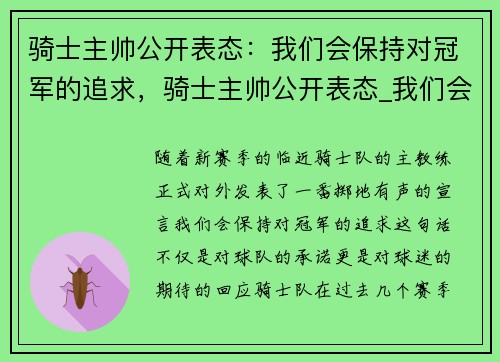 骑士主帅公开表态:我们会保持对冠军的追求,骑士主帅公开表态_我们会保持对冠军的追求