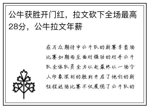 公牛获胜开门红,拉文砍下全场最高28分,公牛拉文年薪