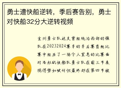 勇士遭快船逆转,季后赛告别,勇士对快船32分大逆转视频