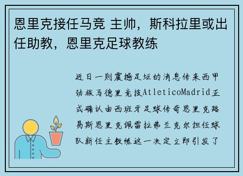 恩里克接任马竞 主帅,斯科拉里或出任助教,恩里克足球教练