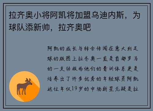 拉齐奥小将阿凯将加盟乌迪内斯,为球队添新帅,拉齐奥吧
