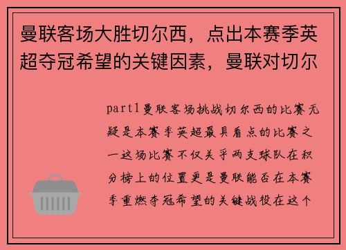 曼联客场大胜切尔西,点出本赛季英超夺冠希望的关键因素,曼联对切尔西比赛分析