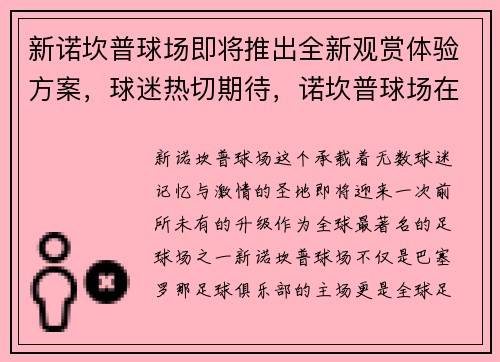 新诺坎普球场即将推出全新观赏体验方案,球迷热切期待,诺坎普球场在哪儿