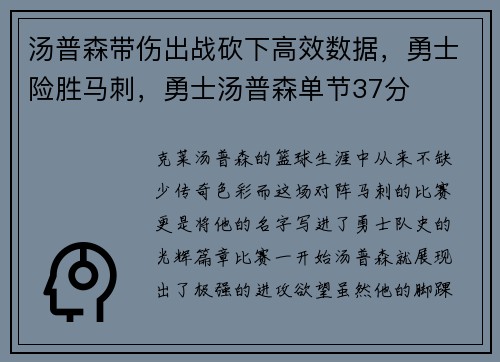 汤普森带伤出战砍下高效数据,勇士险胜马刺,勇士汤普森单节37分