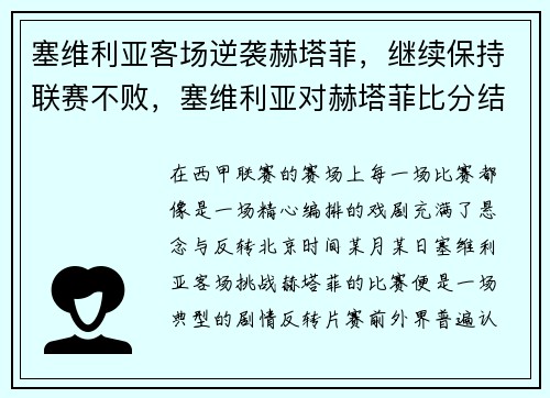 塞维利亚客场逆袭赫塔菲,继续保持联赛不败,塞维利亚对赫塔菲比分结果多少