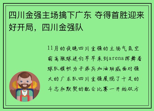 四川金强主场擒下广东 夺得首胜迎来好开局,四川金强队