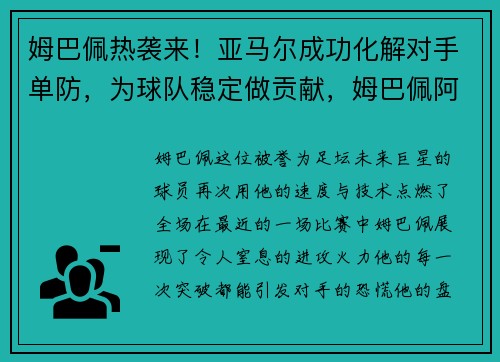 姆巴佩热袭来!亚马尔成功化解对手单防,为球队稳定做贡献,姆巴佩阿尔及利亚