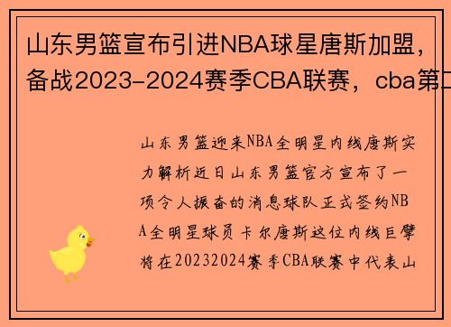 山东男篮宣布引进NBA球星唐斯加盟,备战2023-2024赛季CBA联赛,cba第二阶段山东男篮赛程安排