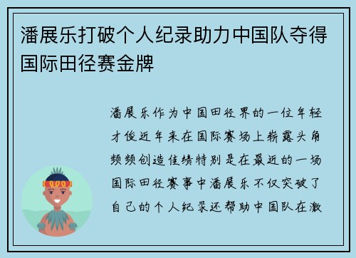 潘展乐打破个人纪录助力中国队夺得国际田径赛金牌