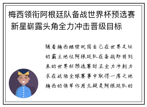 梅西领衔阿根廷队备战世界杯预选赛 新星崭露头角全力冲击晋级目标