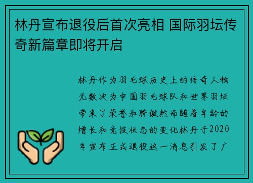 林丹宣布退役后首次亮相 国际羽坛传奇新篇章即将开启